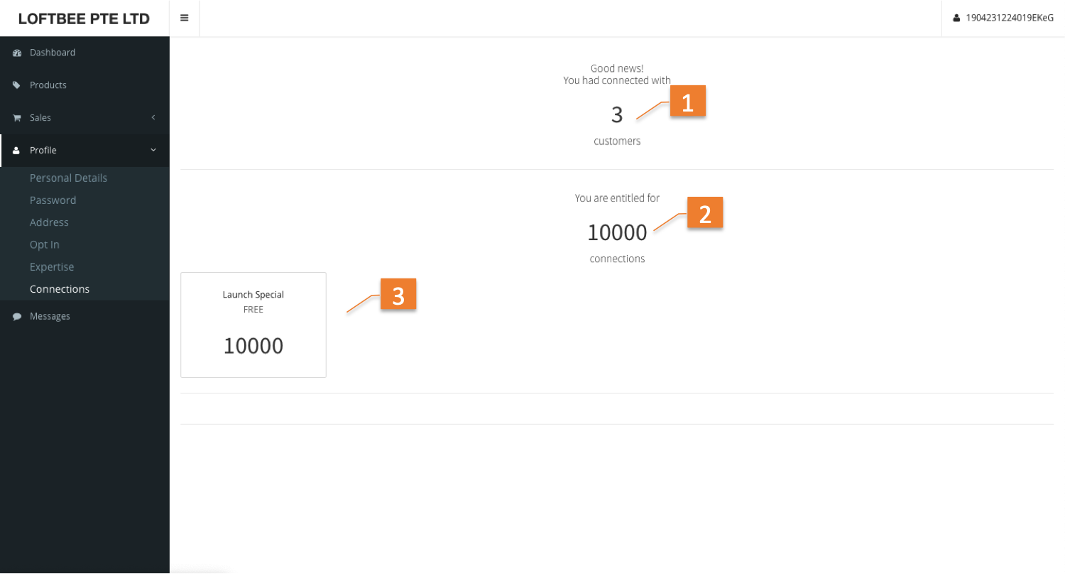 1 | Number of connected customer | Total number of engaged customer. Including enquiry and orders. |