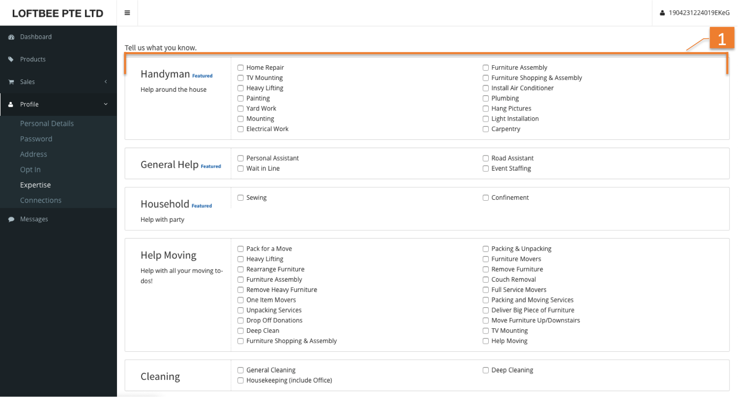 1 | Expertise list | Select multiple item that you are capable on. We can notify you when there's a need in these aspect. |