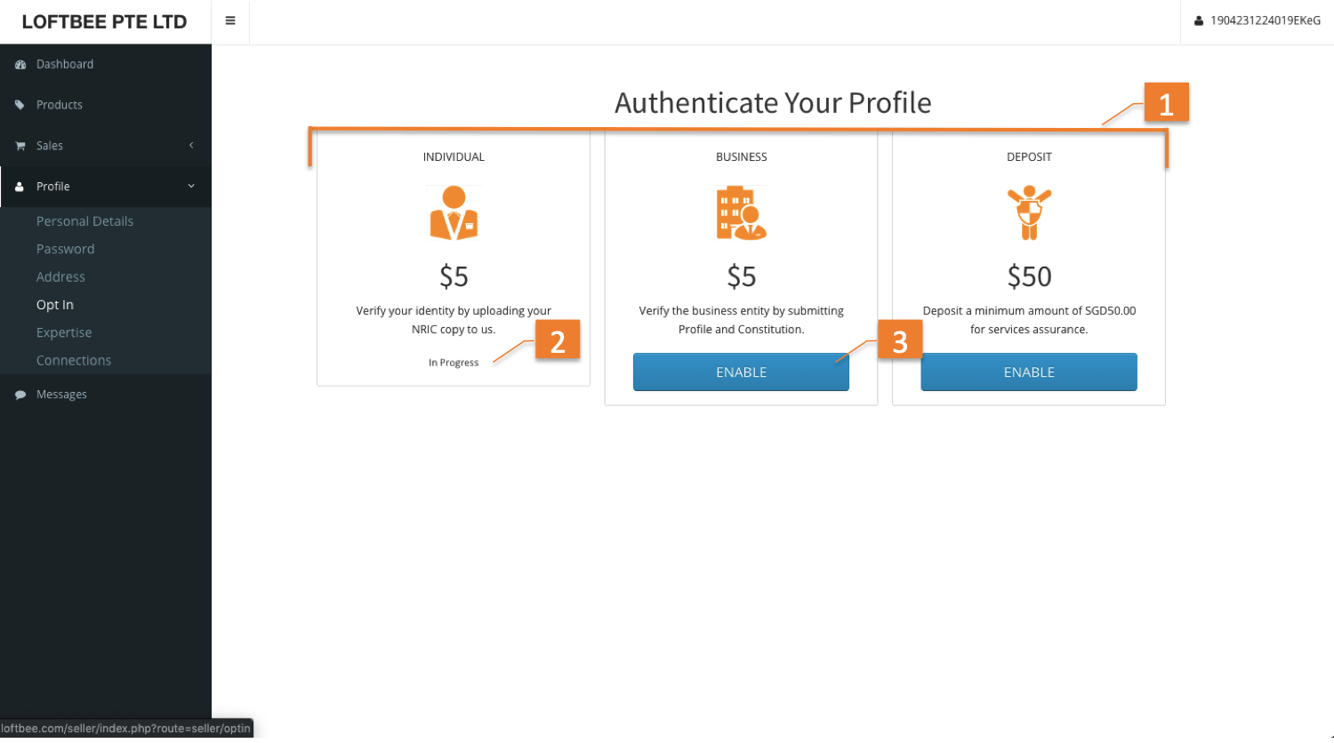 1 | Opt in options | A list of opt in options for seller to activate. |
