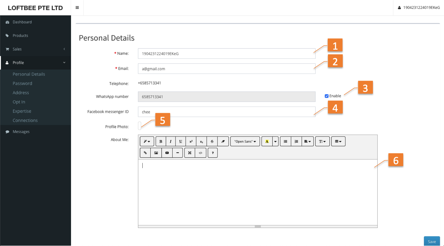 4 | Facebook Messenger ID | Enter Facebook Messenger ID to allow customer contact you via Facebook Messenger |