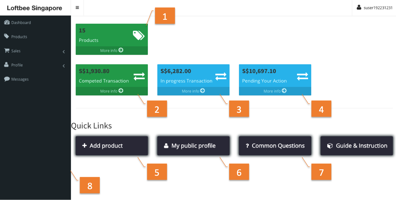 6 | My public profile | To view your profile page that is available for customer. |