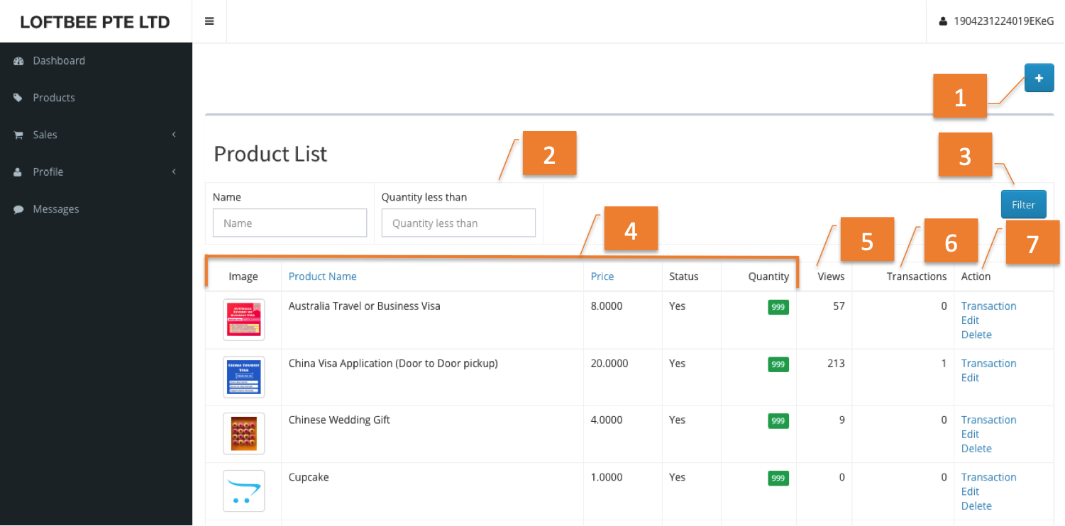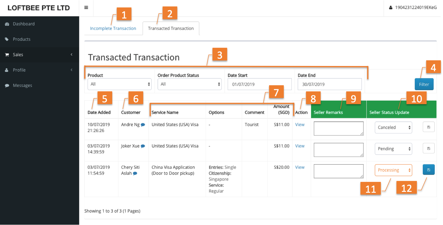 4 | Filter button | Click to filter transaction based on selected options. | ||